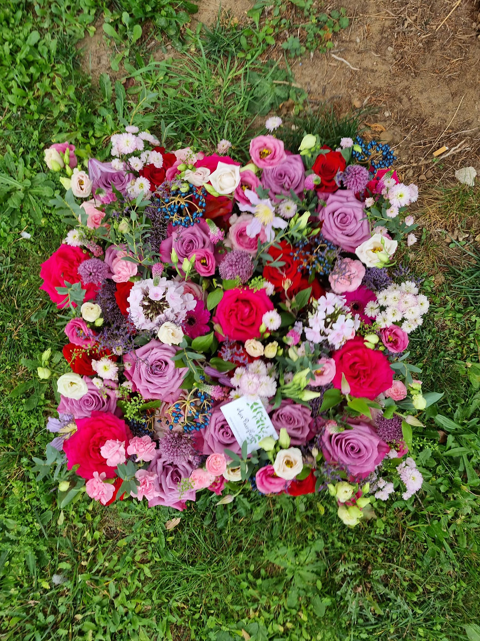 Nous réalisons des gerbes, couronnes, raquettes, cœurs ou coussins floraux, adaptés aux cérémonies religieuses ou laïques. Chaque création est conçue avec soin selon vos souhaits, avec des fleurs fraîches et de saison.